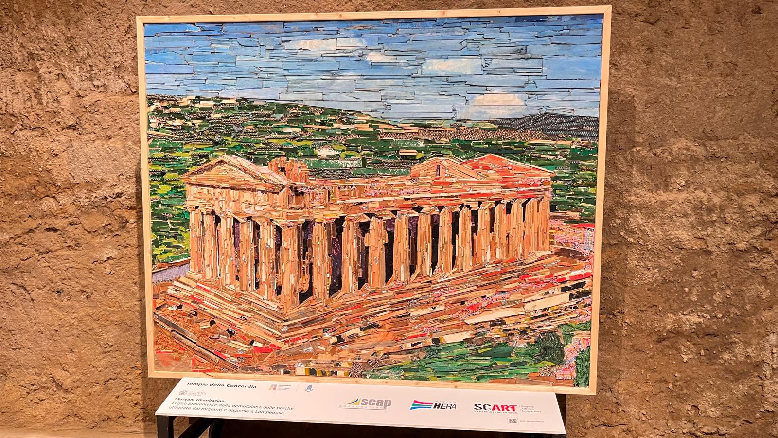 E proprio nella vicenda migratoria affonda le sue radici l’opera più significativa della mostra, realizzata nei laboratori SCART per l’occasione: un quadro del Tempio della Concordia confezionato con il legno delle barche dei migranti. Un vero e proprio ossimoro affacciato sulle contraddizioni dei nostri tempi: un simbolo di fratellanza e armonia con il creato, che prende vita dal legno su cui si sono spezzate le speranze di chi cercava una vita migliore.