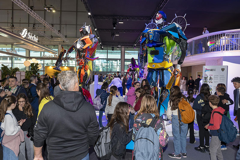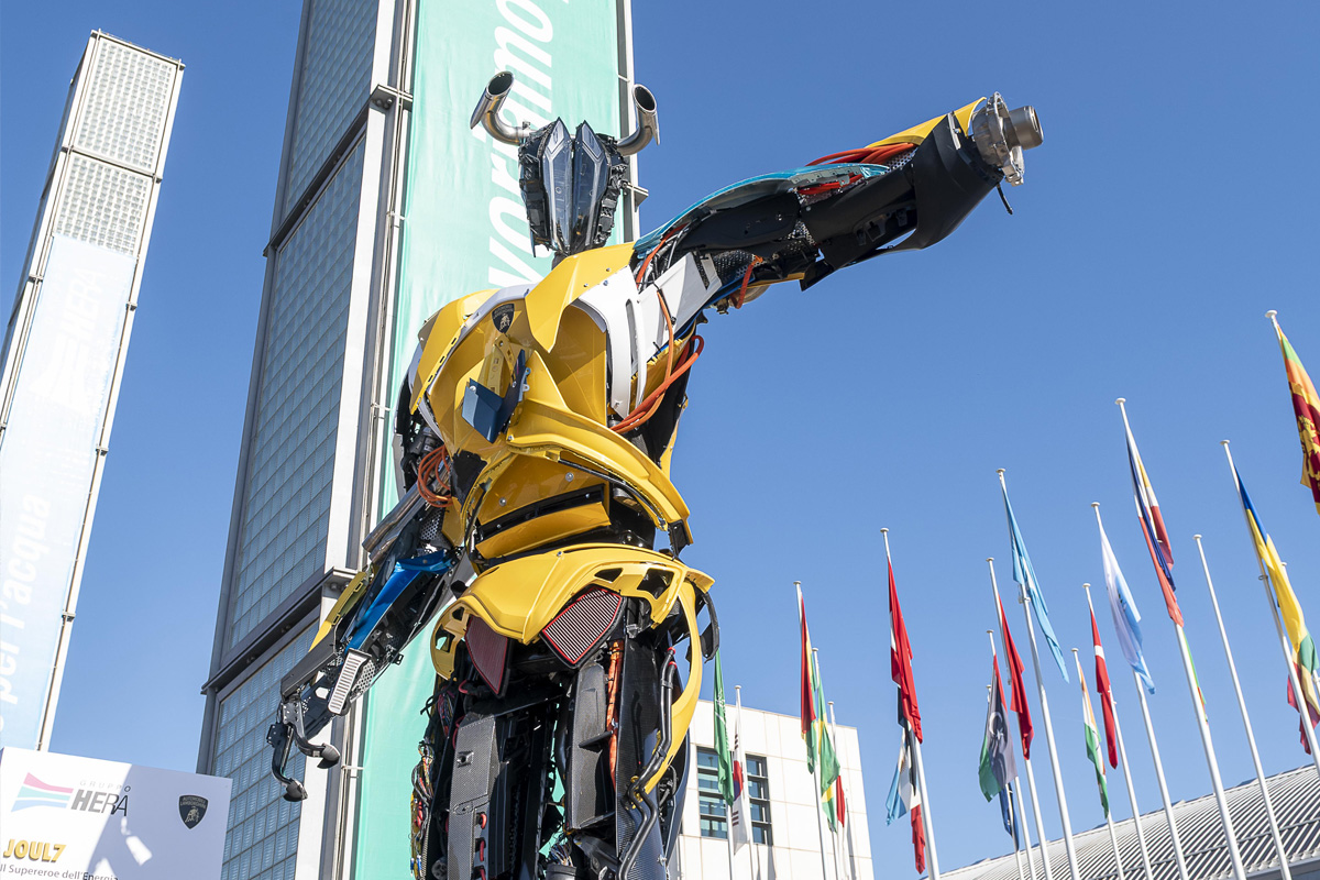 In particolare, i protagonisti indiscussi saranno 6 Super Robot SCART, tre coppie di paladini dell’ambiente realizzati in collaborazione con Automobili Lamborghini per sensibilizzare i visitatori sui temi della tutela del Pianeta e delle sue risorse. Nati dalla penna del celebre fumettista Marvel Giuseppe Camuncoli, che ha curato l’ideazione grafica e l’illustrazione con Giacomo Gheduzzi, i robot alti 4 metri sono stati creati nei laboratori SCART di Santa Croce sull’Arno e Pisa grazie al lavoro degli studenti delle Accademie di Belle Arti di Firenze, Ravenna e del POLI.design (by Politecnico di Milano). La realizzazione è avvenuta materiali di scarto provenienti dalle linee produttive della Casa di Sant’Agata Bolognese, come cofani, fiancate, alettoni, cruscotti, paraurti, fanali e altri componenti.